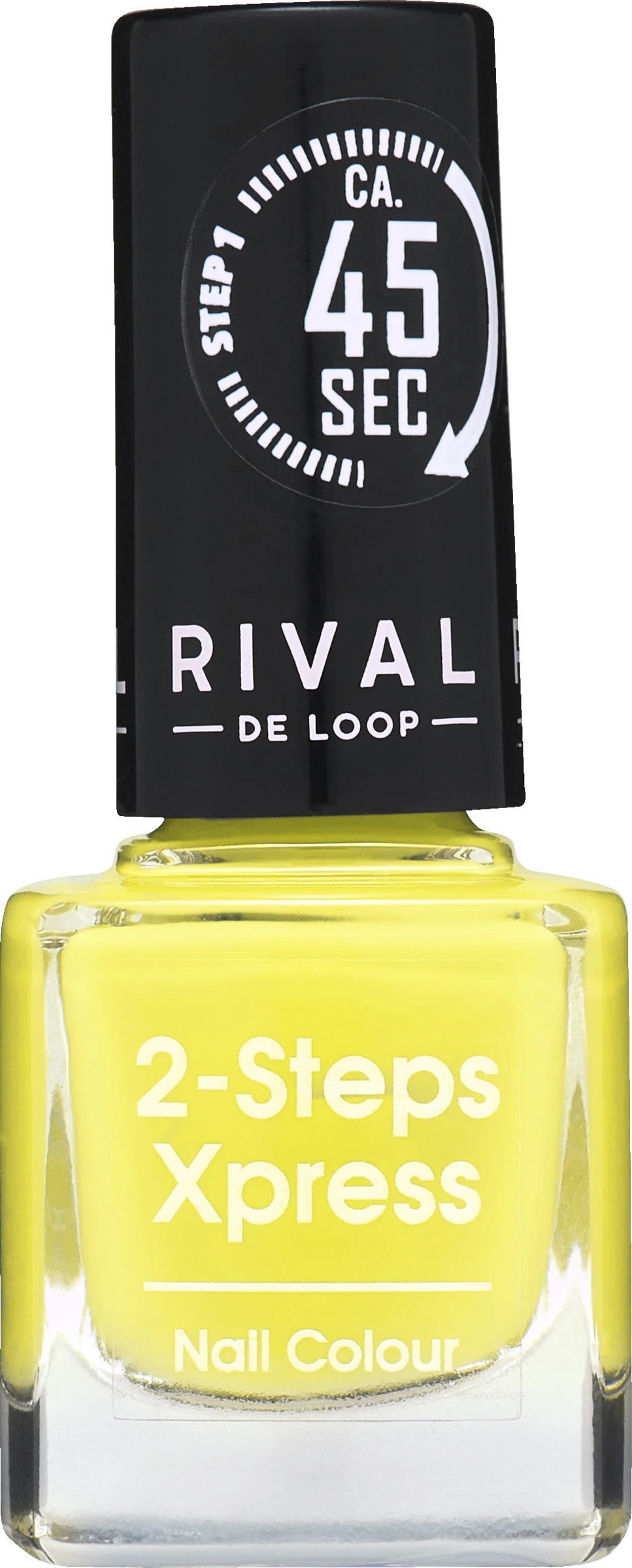 Bitte Unterlack verwenden. 1. Step: Eine Schicht des hochdeckenden und schnelltrocknenden Nagellacks auftragen. 2. Step: Xpress Top Coat verwenden.