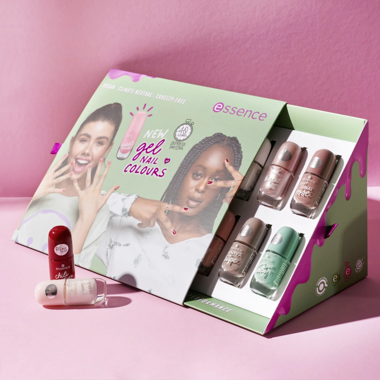 Clean Beauty mit WOW Performance! Mit den gel nail colour Nagellacken gibt es keine Kompromisse: die vegane, clean beauty Formulierung hat eine kurze Liste an Inhaltsstoffen und ist ohne Mikroplastikpartikel. Der Lack lässt sich dank patentiertem, breitem „double-touch“ Pinsel leicht auftragen und trocknet schnell. So ist die erste Schicht der klimaneutralen* Nagellacke in nur 40 Sekunden ready to shine. Good to know: Bei mehreren Schichten verlängert sich entsprechend die Trocknungszeit – diese lässt sich natürlich durch ein Dry Spray oder Drying Drops verkürzen. Tipp: Für den perfekten Salon-Look empfiehlt es sich, zwei Schichten über den Base Coat aufzutragen und mit Top Coat zu versiegeln. *Klimaneutral dank CO2-Kompensation über das Jangi Windparkprojekt in Indien. Dezent, knallig, hell oder dunkel – die farbigen Lacke lassen keine Wünsche offen. Dabei gilt: Je mehr Schichten aufgetragen werden, desto intensiver das Farbergebnis.