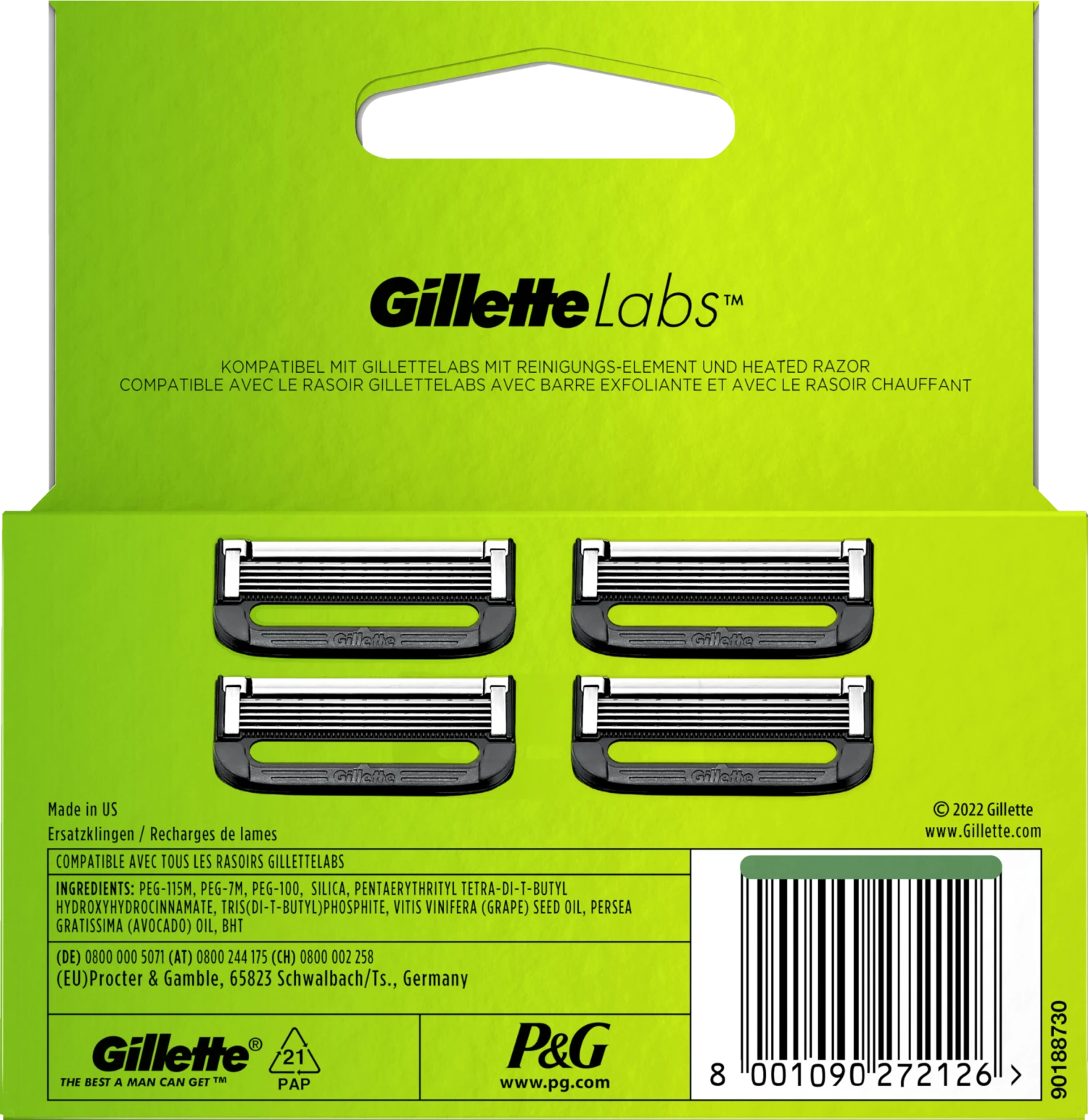 Die Gillette Labs Universal-Ersatzklingen können mit allen Gillette Labs-Rasierern verwendet werden, einschließlich dem Gillette Labs Rasierer mit Reinigungs-Element und dem Gillette Labs Heated Razor.