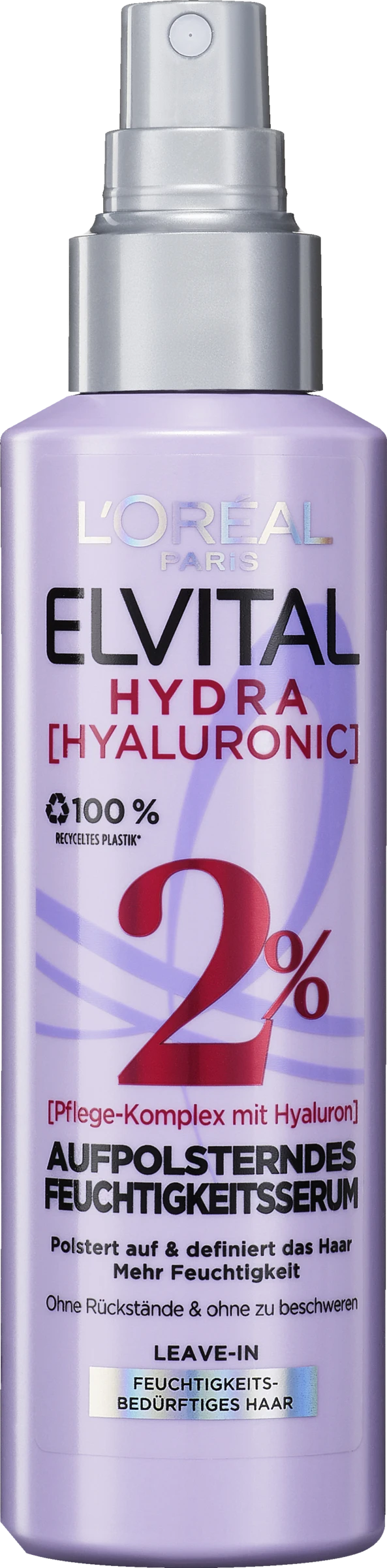 Das L’Oréal Paris Elvital Hydra Hyaluronic Feuchtigkeitsserum versorgt dein Haar mit einem Feuchtigkeitsboost! Die eigens für feuchtigkeitsbedürftiges Haar entwickelte Formel, angereichert mit Hyaluronsäure, versorgt deine dehydrierten Längen mit der nötigen Feuchtigkeit. Ohne Rückstände zu hinterlassen, polstert das Leave-in dein Haar auf und definiert es zugleich. Für gepflegtes, glänzendes und lebendiges Haar mit Schwung – ganz ohne zu Beschweren!