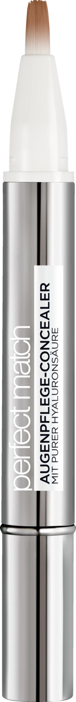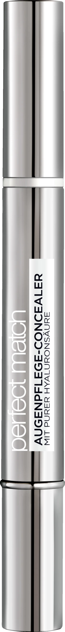 Der Pflegekick für strahlende Augen: Der Perfect Match Augenpflege-Concealer von L’Oréal Paris kombiniert reichhaltige Pflege mit dem schmeichelnden Effekt eines Concealers. Die Formel mit pflegenden Inhaltsstoffen wie purer Hyaluronsäure und Vitamin C, versorgt die Haut intensiv mit Feuchtigkeit, wodurch die Augenpartie ebenmäßiger wirkt. Erste Ergebnisse sind bereits nach 8 Wochen sichtbar. Lichtreflektierende Mineralpigmente hellen den Teint optisch auf, decken Augenringe zuverlässig ab, kaschieren Hautunreinheiten und geben der Haut ein sofortiges und natürliches Strahlen. Der feine Pinsel-Applikator ermöglicht einen präzisen Auftrag.