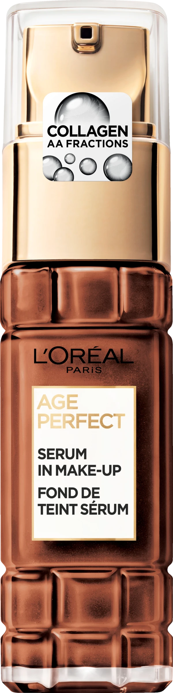 Frisch in nur 1 Minute: das Age Perfect Serum in Make-up von L’Oréal Paris vereint die Kraft einer glättenden Serum-Pflege mit der natürlichen Deckkraft eines Make-ups – ganz ohne Maskeneffekt und ohne Absetzen in Fältchen. Es deckt Unebenheiten und Rötungen schnell ab und ist auf reife, anspruchsvolle Haut abgestimmt. Mit einem 2-in-1 Sofort-Effekt und LSF 24 strafft das Make-up die Haut und sorgt für ein frisches, strahlendes und natürlich ebenmäßiges Hautbild. Durch die Pflege-Formel mit Kollagen-AS-Fragmenten sorgt es für optisch gemilderte Fältchen und verbessert das Hautbild über die Zeit der Anwendung.